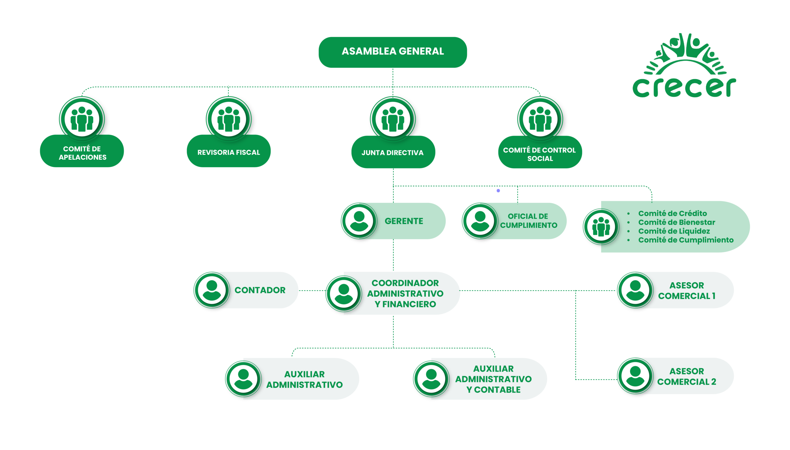 En Crecer entregamos servicios y bienestar que contribuyen al mejoramiento de la calidad de vida de nuestros asociados y sus familias, fomentando una sana cultura financiera, gestionando el bienestar social, facilitando servicios de crédito, promoviendo el ahorro y el emprendimiento.